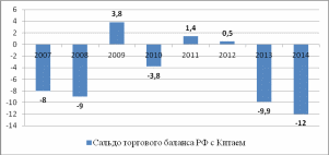 Рисунок 2.4 Внешнеторговый баланс РФ и Китая (млрд. долл.)
