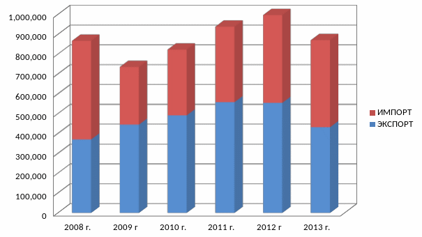| Экспорт | 369 887 | 445287 | 492062 | 558135 | 555169 | 432 399 |