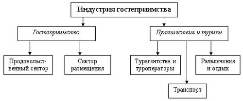 Ваген Л. Считает, что «Индустрия гостеприимства - это сектор индустрии туризма, отвечающий за размещение туристов, а также отрасли, деятельность которых направлена на продажу алкогольных напитков, предоставление жилья, пищи и увеселительных мероприятий» [11].