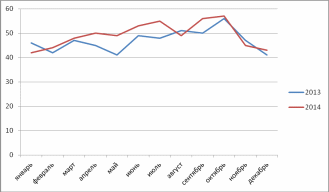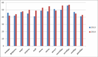 Рис. 2.9 График заполняемости по месяцам за 2013-2014 г