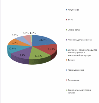 Таким образом, можно сделать вывод, что самая востребованная из предоставляемых услуг среди гостей данной гостиницы является предприятие общественного питания.