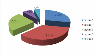 9,4% респондентов не пользовались услугами кафе. 90,6% из опрошенных респондентов пользовались услугами кафе за время проживания в данной гостинице. Из них 28% оценили удовлетворенность от предоставленных услуг кафе на самую высокую оценку. 35,2% из респондентов оценили на оценку «хорошо». 25% оценили удовлетворенность от полученных услуг на оценку «удовлетворительно». 7,3% респондентов поставили оценку «не удовлетворительно» и 4,4% оценили на «очень не удовлетворительно». Достаточно высокое количество баллов удовлетворенности среди проживающих в данной гостинице составили оценки «хорошо» и «отлично», что составило 63,2%. Но в тоже время нельзя оставить без внимания то, что 36,7% респондентов неудовлетворенно. Средний балл по удовлетворенности составляет 3,75.