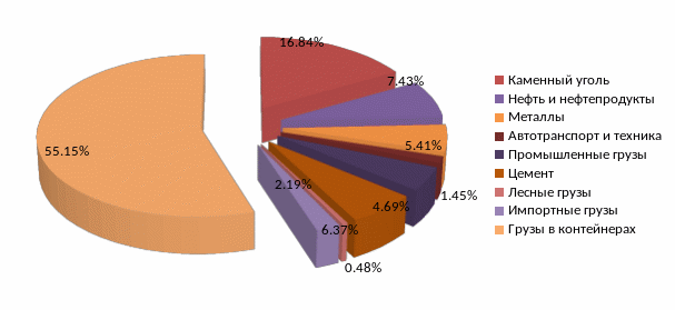 Рис. 3.1. Выгрузка в вагонах по станции Хабаровск-2, по роду груза