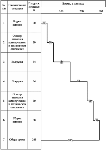 Рис. 2.1. Технологический график выполнения грузовых и коммерческих операций по прибытии и отправлении контейнеров на 7 тупике
