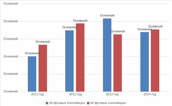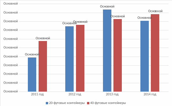 Проведя анализ данных, установлено, что объемы переработки крупнотоннажных 20 футовых контейнеров уменьшается в 2014 году по сравнению с 2013 годом, а переработка 40 футовых увеличивается. Погрузка крупнотоннажных 20 футовых контейнеров в 2014 году уменьшилась по сравнению с 2013 годом в 1,16 раза, выгрузка уменьшилась в 1,23 раза. Хотя погрузка крупнотоннажных 40 футовых контейнеров в 2014 году увеличилась по сравнению с 2013 годом в 1,07 раза, выгрузка увеличилась в 1,08 раза