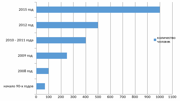 Рис. 1.1 Количество человек, посетивших Северный полюс