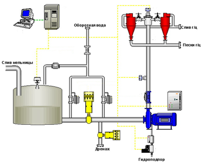 – непрерывное, централизованное управление насос-гидроциклонной установкой в режиме реального времени;
