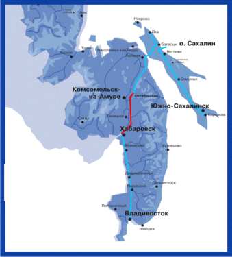 Рисунок 1.2 Карта газотранспортной системы Сахалин-Хабаровск –Владивосток
