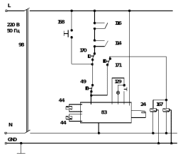 Рисунок 2.3 Электрическая схема подключения терморегуляторов к автоматической горелке; - 24 – электрод розжига; -44 – газовый клапан; - 49 – термостат безопасности; -83 – электронный контроллер; -98 – автоматический выключатель; - 114 – датчик давления воды; - 116 – датчик давления газа; - 129 – кнопка перезапуска с сигнальной лампочкой; -158 – кнопка тестирования; - 167 – газовый клапан второй ступени; - 170 – первая ступень регулирующего термостата; - 171 – вторая ступень регулирующего термостата