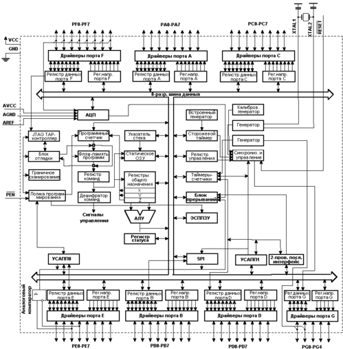 Рисунок 5.3 Структурная схема микроконтроллеров семейства MEGA