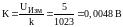 В AVR микроконтроллерах источником опорного напряжения может служить внешний источник на выводе AREF, напряжение питание и внутренний источник на 2.56 В. Опорное напряжение является эталонной величиной по отношению, к которому будет происходить преобразование в АЦП. В нашей схеме принято использовать в качестве опорного источника - напряжение питания микроконтроллера 5 В. Измеряемое напряжение будет лежать в пределах от 0 до 5, определим шаг квантования K: