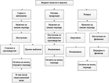 3) Из бюджета запасов и закупок – о доходах и расходах связанных с приобретением и реализацией товарно-материальных ценностей;