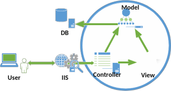 ASP.NET MVC[ CITATION Mic \l 1049 ] является набором библиотек для разработки от Microsoft, который сочетает в себе эффективность и аккуратность архитектуры MVC (Model-View-Controller), самые современные идеи и методы гибкой разработки и лучшие свойства существующей платформы ASP.NET. Это альтернатива традиционным ASP.NET Web Forms, которая обеспечивает существенное преимущество для всех, кроме самых простых и тривиальных, проектов веб-разработки. Схематично шаблон проектирования MVC представлен на рисунке 1.