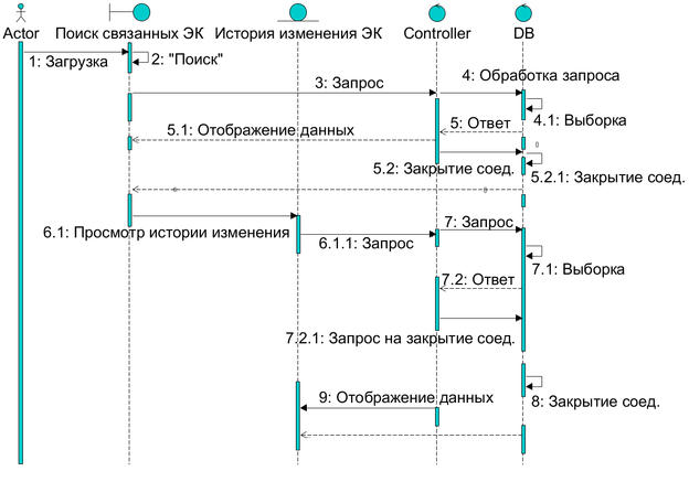 Диаграмма последовательности (поиск связанных элементов)