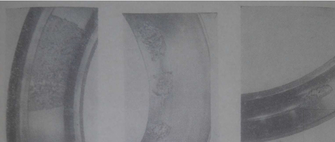 - Усталостные раковины на дорожке качения наружного кольца показаны на рисунке 1.9. Причины возникновения и развития – Достижение предела контактно-усталостной прочности дорожек качения. Способ выявления – внешний осмотр. Предложения по эксплуатации – кольцо заменить или использовать в соответствии с действующей нормативно-технической документацией;