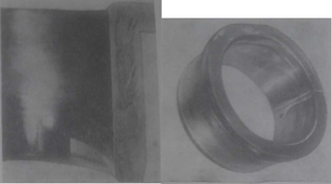 - Проворачивание внутреннего кольца на валу или на шейке оси (потеря посадочного натяга) показано на рисунке 1.7. Причины возникновения и развития – недостаточная величина посадочного натяга или увеличение посадочного диаметра из-за нарушений технологии изготовления, термообработки или из-за разрыва кольца. Способом выявления является внешний осмотр и обмер. Для дальнейшей эксплуатации необходимо заменить кольцо;