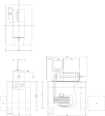 Электрический шкаф собирается из металлических листов и уголков, тем самым создающих корпус стенда. Внутри шкафа находится асинхронный двигатель, соединенный с валом клино-ременной передачей и частотный преобразователь. Частотный преобразователь необходим для того, чтобы обеспечивать необходимую частоту вращения двигателя, тем самым задавая необходимую частоту вращения подшипника, закрепленного на валу. Рисунок 3.2, расположенный ниже представляет собой примерный чертеж разрабатываемого стенда, в который включены основные узлы и их примерное расположение, а также основные размеры стенда.