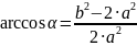 Тогда для расчёт угла α, воспользуемся теоремой косинусов: