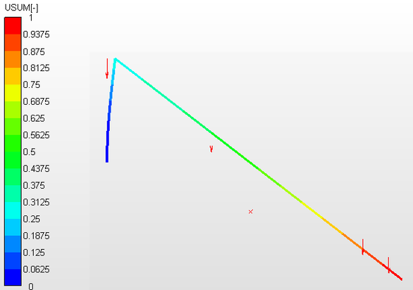 = 1200 – коэффициент устойчивости, указывает во сколько раз можно превысить нагрузку, на карте расчёта изображено его обратно пропорциональное распределение вдоль всей конструкции[4].