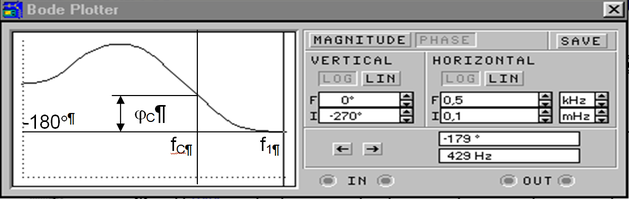 Величину С, на которую фазовая характеристика на частоте fC (соответствующей усилению 0 дБ) отличается от -180, называют запасом устойчивости по фазе. Фазовая характеристика должна проходить выше линии -180 на частоте fC.