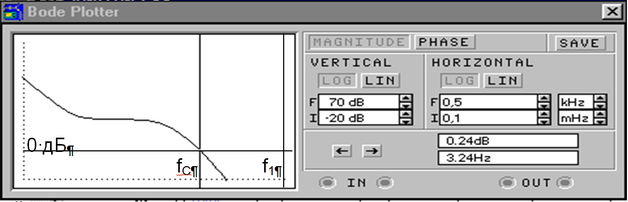 где fc= 3,24 Гц; f1 = 429 Гц; φc = 700; Ас = -80 дБ.