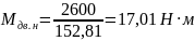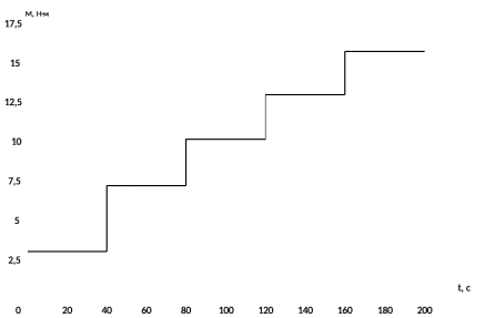 В первой рабочей ступени (двигательный режим работы) момент определяется по выражению, Н∙м