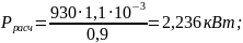 Определяем среднеквадратичное значение мощности за время работы, Вт.