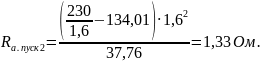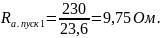 В момент пуска ω = 0, следовательно сопротивление якорной цепи, Ом