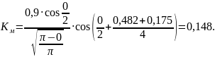| Км | 0,899 | 0,868 | 0,738 | 0,533 | 0,276 | 0,056 | 0 |
