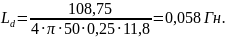 Рассчитываем индуктивное сопротивление цепи выпрямленного тока, Гн.