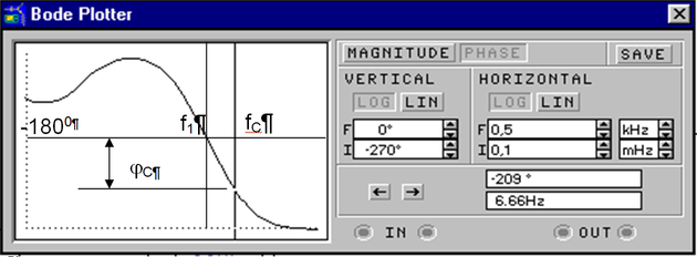 Для оценки запаса устойчивости САР возможно использование различных методов. Система моделирования EWB позволяет экспериментально исследовать логарифмические амплитудно-частотные (ЛАЧХ) и фазово-частотные характеристики (ЛФЧХ) разомкнутой САР, в связи с этим целесообразнее использовать критерий Найквиста [3] для оценки запаса устойчивости САР.