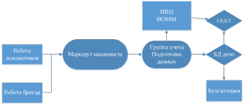 В рамках ИОММ (рисунок 1.1) результаты работы локомотивов и локомотивных бригад фиксируются в маршрутных листах машинистов (ММ), представляющих собой комплексный информационный документ. Обработка ММ - важная и сложная функция депо. База данных, создаваемая в результате обработки ММ – основной и комплексный источник информации о работе депо. Автоматизация обработки ММ – третья и очень важная группа АРМ локомотивного депо.