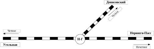 - в четном направлении: однопутный Нерюнгри-Грузовая – Угольная, оборудован двусторонней полуавтоматической блокировкой для движения грузовых поездов обоих направлений на автономной тяге. На 2 км ПК 8 установлены устройства контроля схода подвижного состава (УКСПС). Схема примыкания представлена на рис. 1.2.