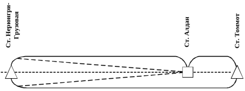 В виду отсутствия оборотного депо на станции Нерюнгри-Грузовая работа локомотивов и локомотивных бригад ОАО АК «ЖДЯ» затруднена, так как время хода поездов на участке Алдан – Нерюнгри-Грузовая составляет более восьми часов в каждом направлении. В связи с этим, для вывоза угля с раздельных пунктов Денисовский, Чульбасс и Тенистый и доставки их на станцию Нерюнгри-Грузовая используются локомотивы ОАО «РЖД», при этом локомотивные бригады вынуждены отдыхать на станции Беркакит, в комнате отдыха локомотивных бригад, также, принадлежащей ОАО «РЖД». Схема существующего тягового обслуживания показана на рис. 1.3.