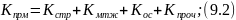 где Кстр– затраты на выполнение строительных работ; Кмтж–стоимость работ по монтажу оборудования; Кос – стоимость основных средств (оборудования); Кпроч – прочие затраты.