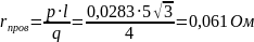 Сопротивление соединительных проводов сечением q = 4 мм2, длиной l = 5 м и удельным сопротивлением p = 0,0283 Ом/м∙мм2 для алюминия: