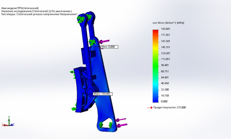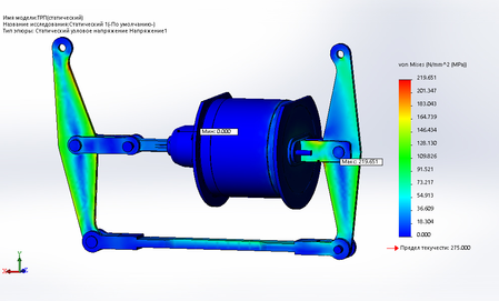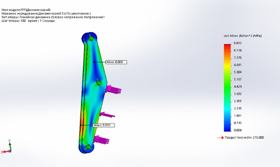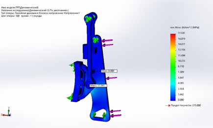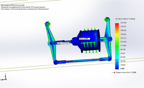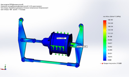 Исследовав данную модель в программе Solid Works был получен ряд результатов. По данным результатам было выявлено, что данный узел имеет достаточный запас прочности для того что бы снизить его массу. Для модернизации ссылаться на статический расчет, так как он имеет максимальное напряжение.