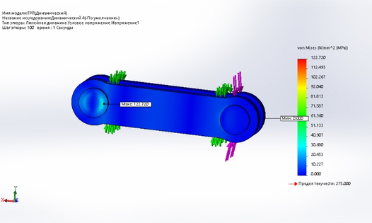 На основе данных полученных при динамическом и статическом расчете можно сделать вывод, что в 1–5 группе максимальное напряжение при динамическом расчете меньше чем при статическом.
