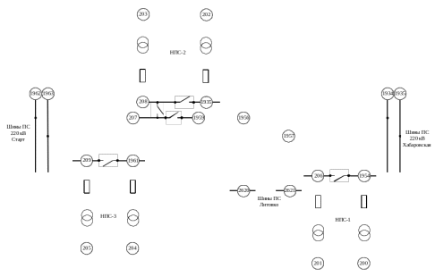 Рисунок А.1 – Схема замещения сети 220 кВ Хабаровская - Старт