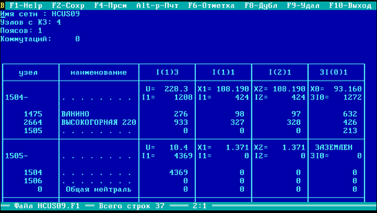 Расчет токов коротких замыканий производим с помощью программного комплекса ТКZ-3000, разработанного Новосибирским проектно-изыскательским и научно-исследовательским институтом «Энергосетьпроект», и загруженными данными Хабаровской ЭС. Результаты работы сведены в таблицы 1.2-1.4.