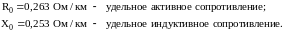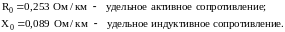 - удельные реактивное и активное сопротивления кабеля, Ом/км;