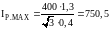 Определим максимальный рабочий ток на вводе трансформатора, А: