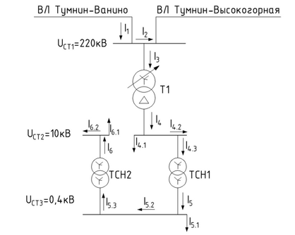 Рисунок 2.1 – Схема для расчета максимальных рабочих токов