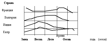 На рисунке 1.2 представлен график изменения спроса от сезона года в некоторых странах.