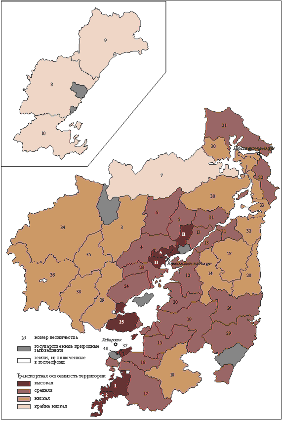 Транспортная освоенность рекреационных ресурсов лесничеств Хабаровского края