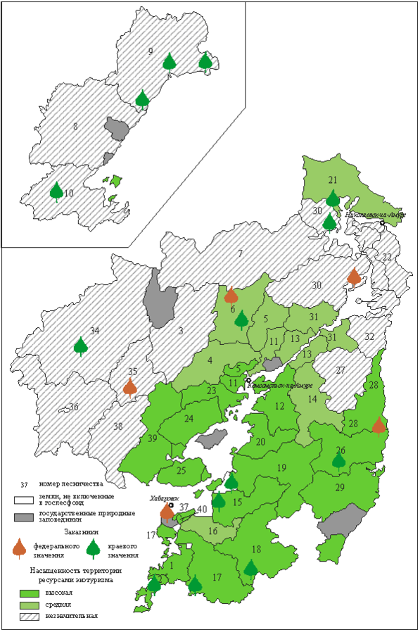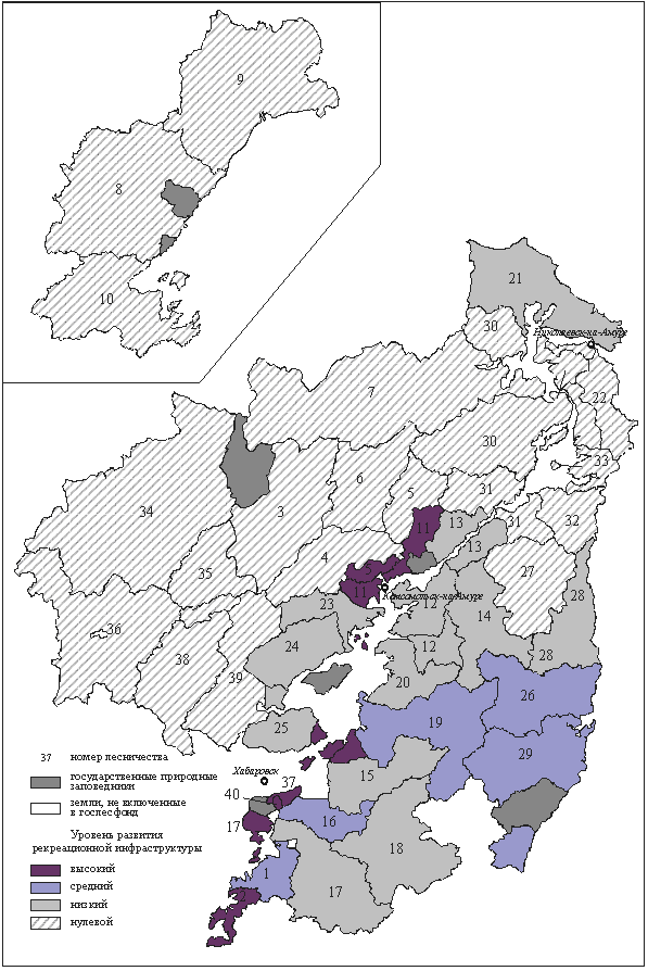 Наличие и уровень рекреационной инфраструктуры на территории лесничеств Хабаровского края