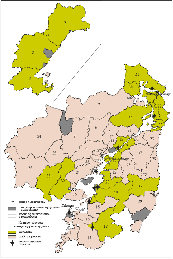 Наличие ресурсов этнокультурного туризма на территории лесничеств Хабаровского края