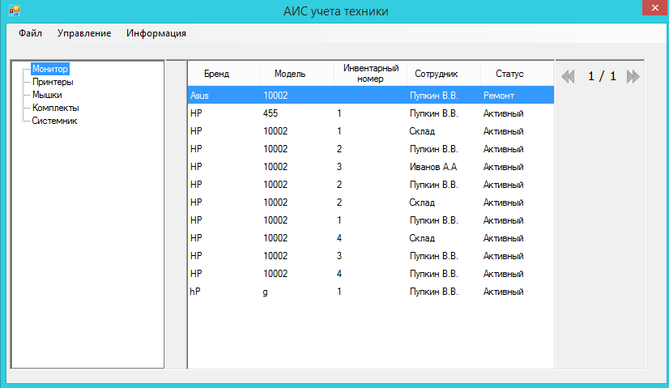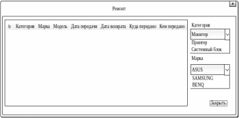 форма «Ремонт» – содержит список оборудования, имеющего статус «ремонт» (рис. 15).