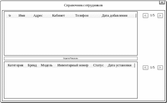 форма «Справочник сотрудников» – содержит список сотрудников, их местонахождение и закрепленную компьютерную технику за выбранным сотрудником (рис. 9);