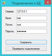 Рисунок 23 – Форма подключения к базе данных